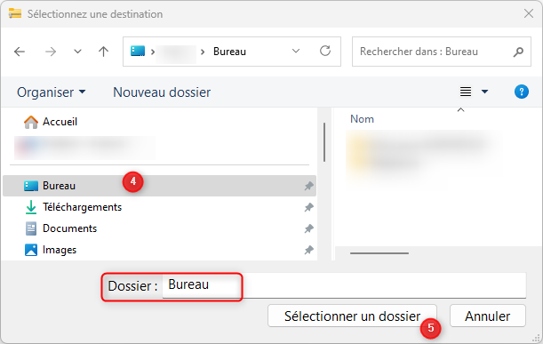 - puis sélectionnez "Bureau"